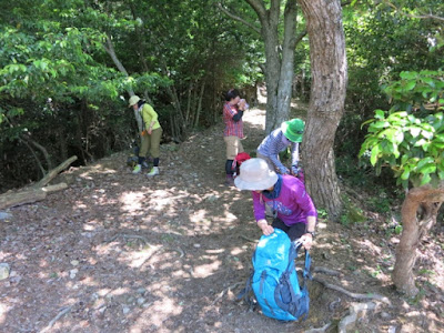 木陰でお昼ごはんを食べた後、「あの山何かな~」などと眺めていたら、超ベテラン風の山男さんがレクチャーしてくださいました。見える山を全部そらで言えてしまって、すごい。何やら大きな自作資料も持ってらして、地図読みやコンパスの使い方についても解説してもらっちゃいました。周りの人たちに「先生」と呼ばれていたな~。